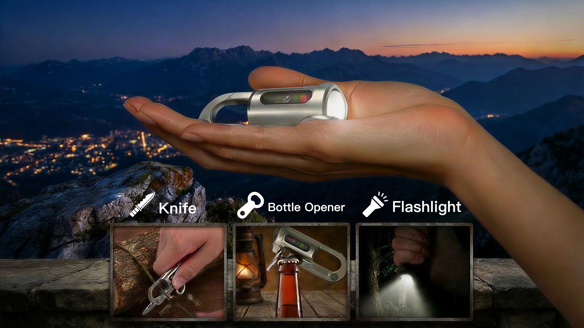 Multi-Tool Ready – Combines flashlight, folding knife, and bottle opener in one.