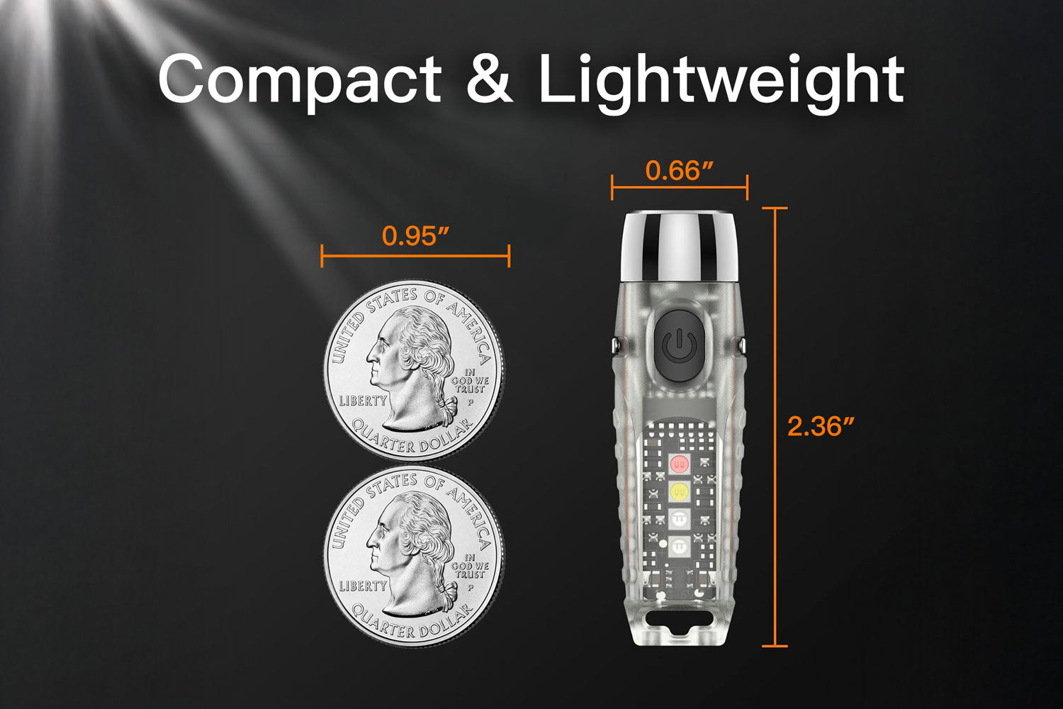 At just 2.38" long and 0.67 oz, this ultra-compact powerhouse defines minimalist carry. Its slim 0.66" diameter packs high-performance lighting into a frame that disappears on your keys.
