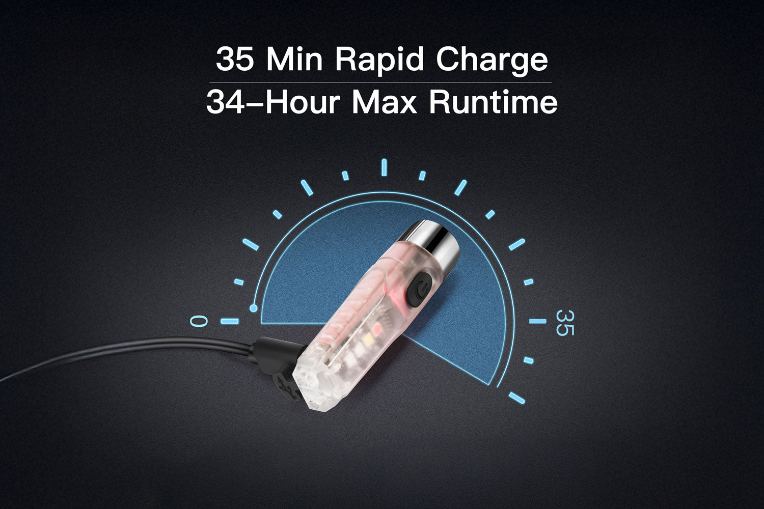 Rapid Recharge: USB-C charging in 35 minutes for up to 34 hours of light.