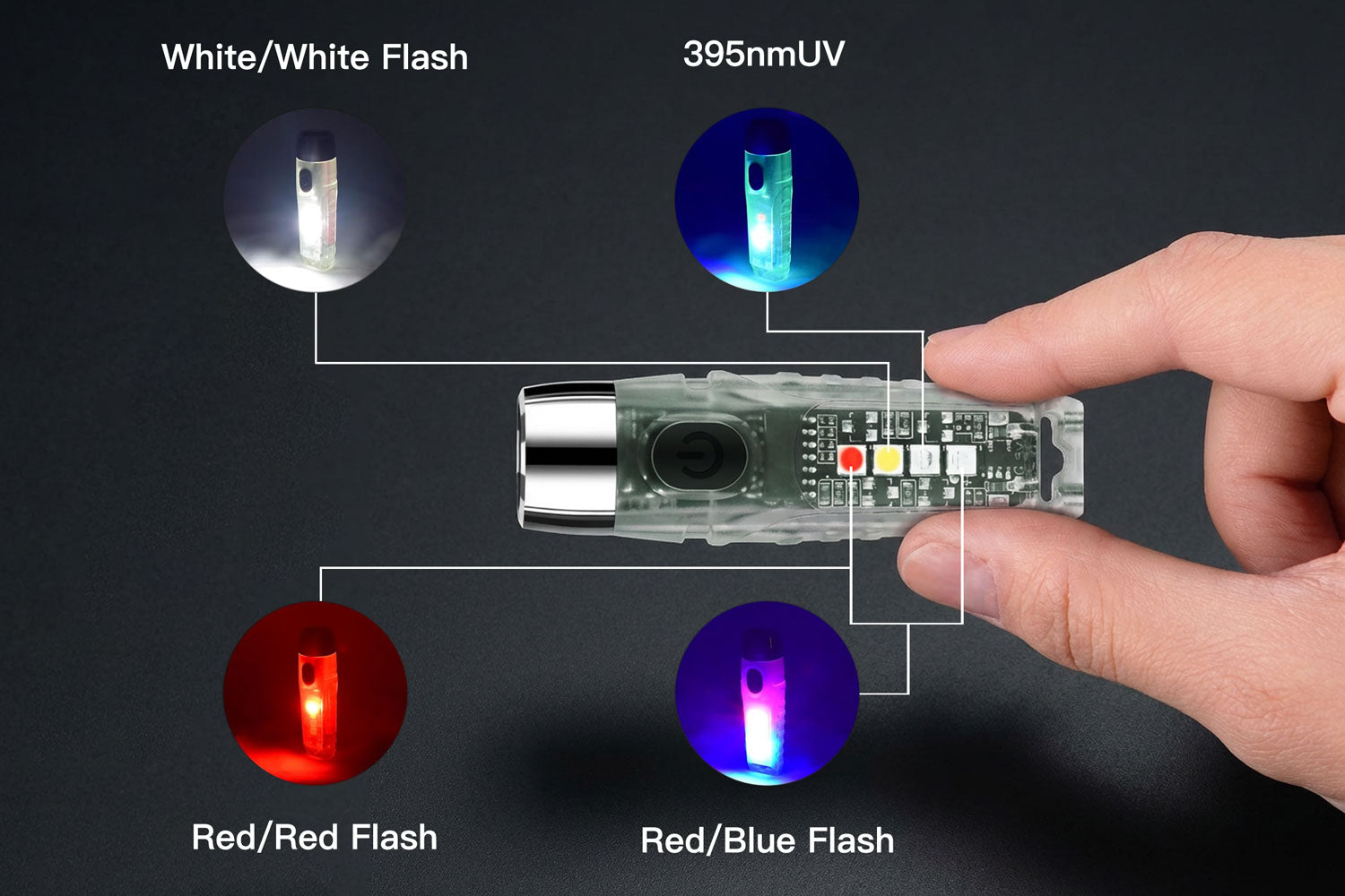 Unlock a versatile toolkit with a simple triple-click. The S12 Plus sidelights feature a specialized 395nm UV light for detection, Red/Blue flashes for emergencies, and multi-color modes for signal or reading.